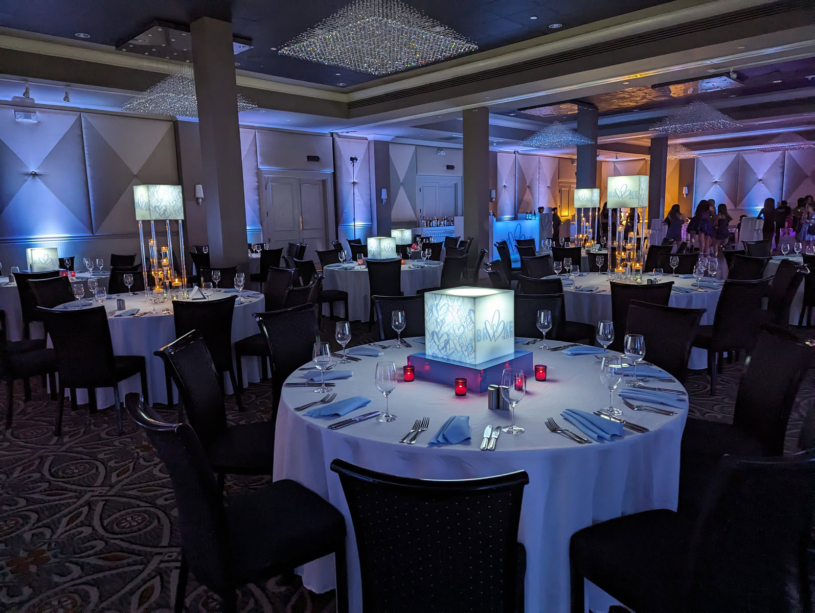Establishing the perfect ambiance for your gathering can make all the difference in how your attendees feel. We offer full-scale lighting production needs to transform and enhance your space. Our expertise includes LED uplighting, automated dance floor lighting, and even Gobo and image projections. Beyond just lighting, we’re also here to help with everything from lounge furniture to centerpieces, candy buffets, and linens and chairs for hire.